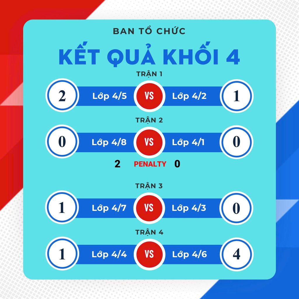 Xin chúc mừng các tập thể lớp 4/5, 4/6, 4/7, 4/8, 5/2, 5/5, 5/6 và 5/7 đã xuất sắc giành quyền vào vòng bán kết sắp tới!